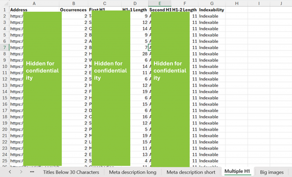 Below is a simplified example of how our SEO audit services interpret a real technical finding. Client details have been removed, but the reasoning reflects the way we assess live websites.